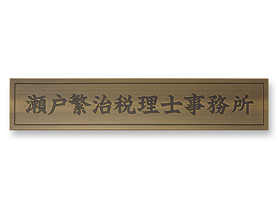 エッチング(腐食)加工とは金属プレートを特殊な溶剤で溶かし、文字デザイン部に凹凸をつけ屋外用塗料で焼付け印字する方法です。耐久性が良く細かい印字も可能で、学校や公共施設等で幅広く使用されているもっともポピュラーな銘板・看板です。素材はサビに強いステンレスとエイジング(変色劣化)を楽しむ銅と真鍮があります。