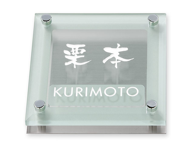 重厚なガラスとガラス裏面に施された繊細なデザインが織り成すハーモニーが魅力のガラス表札です。ベース板付きタイプのベース板は定番のステンレスヘアラインとブラックステンレスの他にユニークなデザインが施された銅ブロンズ板と真鍮イブシ板もお選びいただけます。